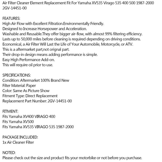 Air Filter for Yamaha XV400 XV500 XV535 Virago (1987-2000)