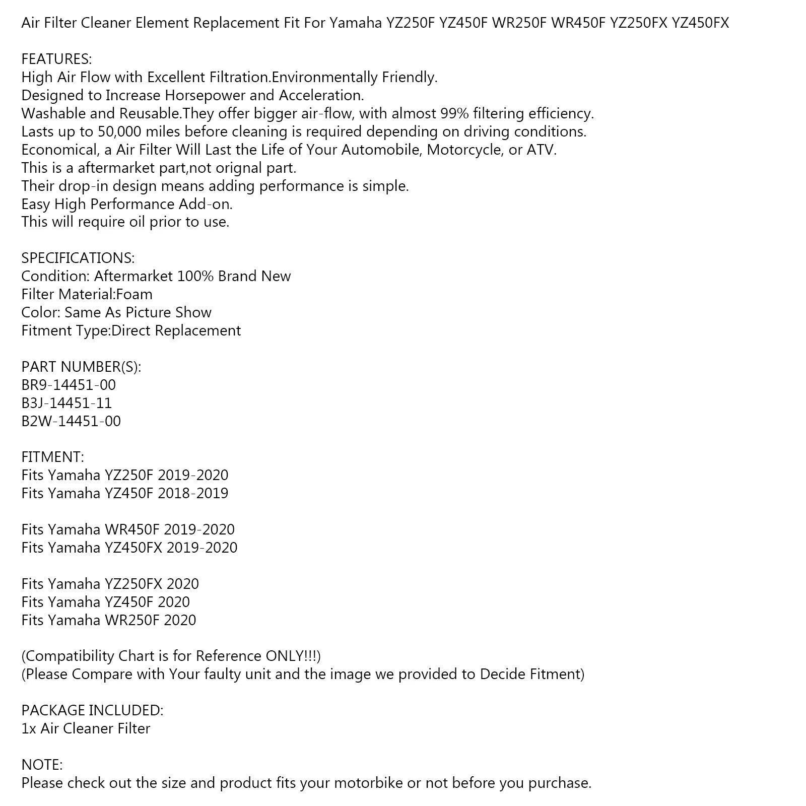 Air Filter for Yamaha YZ250F WR250F WR450F YZ250FX YZ450FX (2018-2020)