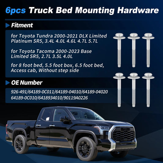 6 Pcs Bed Mounting Hardware Bolts for Toyota Tundra Tacoma (2000–2021)