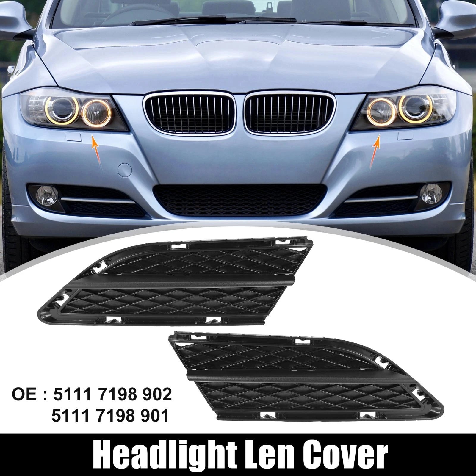 1 Pair Fog Light Grille Black for BMW 328i (2009-2010)