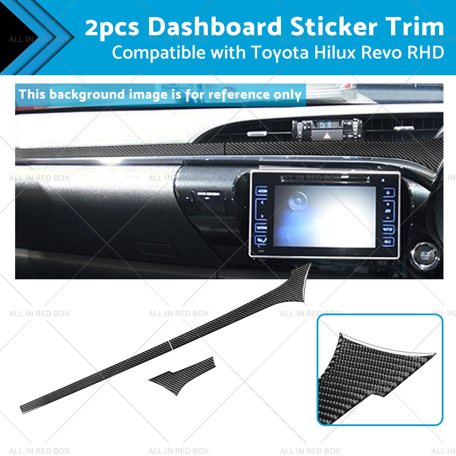 Enhance the interior of your Toyota Hilux Revo with our premium Carbon Fiber Dashboard Trim. Designed specifically for right-hand drive models from 2015 to 2023, this trim offers a sleek, modern look that elevates your vehicle's aesthetic. Crafted from high-quality carbon fiber, it provides a perfect fit and finish, ensuring a seamless integration with your existing dashboard.