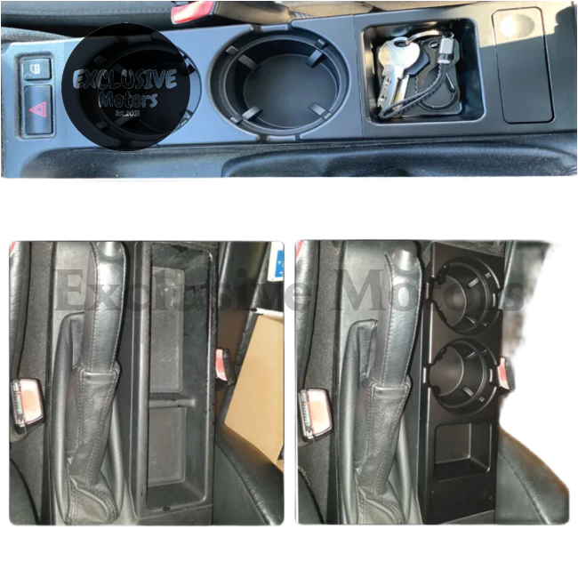 This front center console storage box is designed specifically for the BMW E46 3 Series models from 1999 to 2006. It features a double hole design, providing convenient storage for coins and cup drinks, enhancing the functionality and organization of your vehicle's interior.