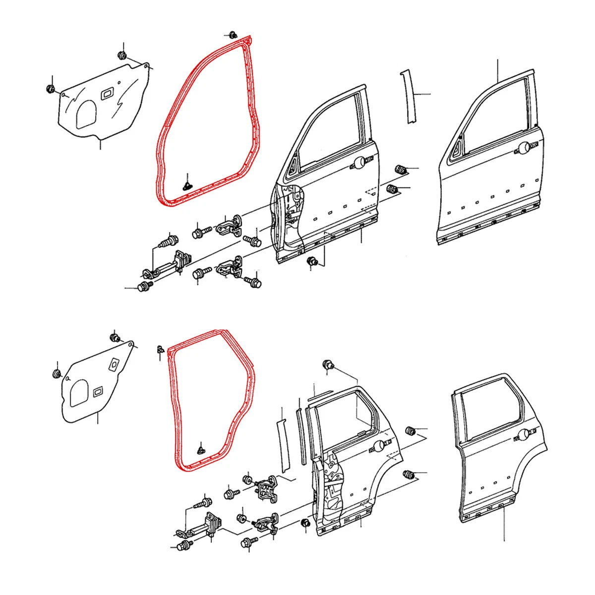 - Front and rear door weatherstrips