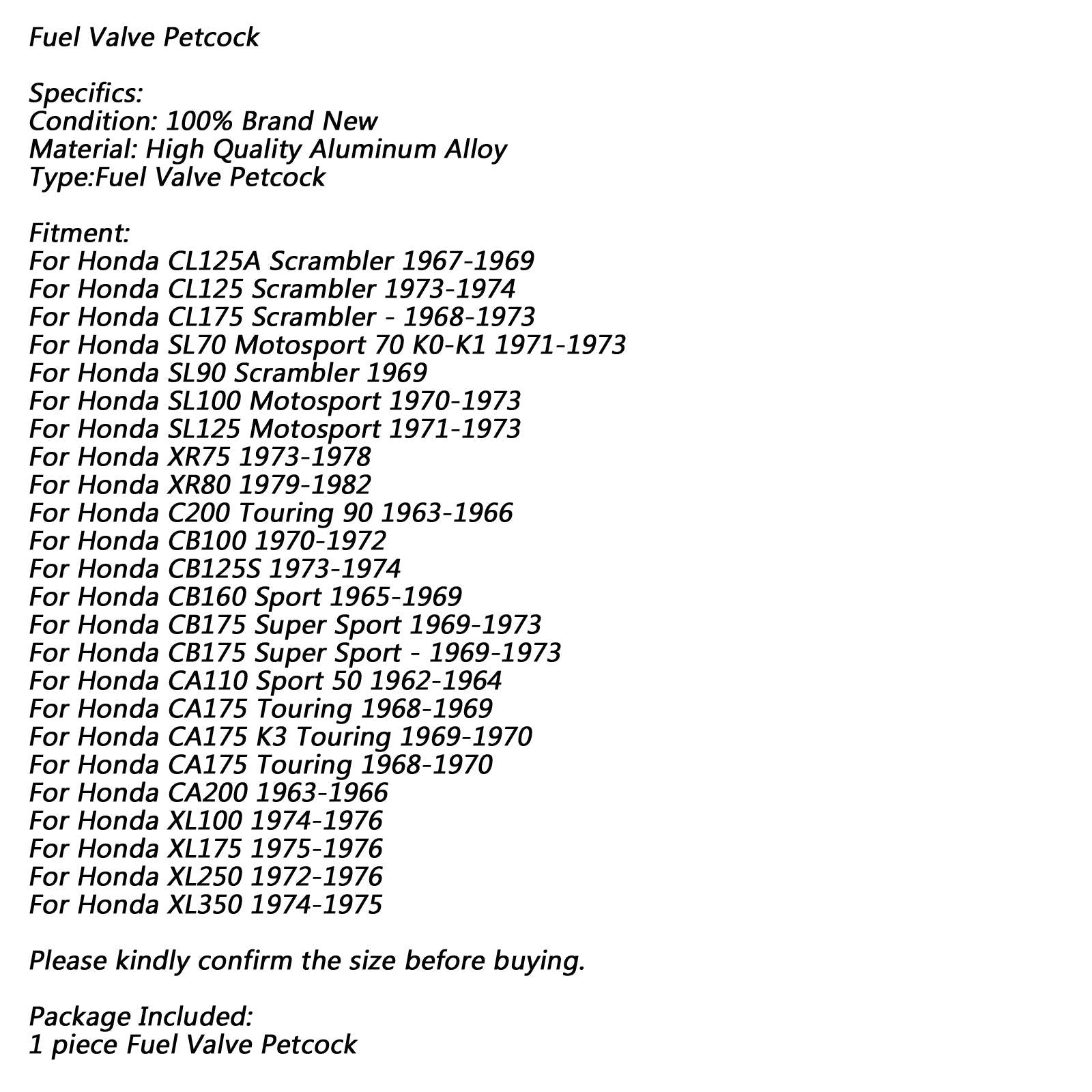 Fuel Valve Petcock Switch For Honda CL125 CL175 SL90 Scrambler XL100 XL175 XL250 Generic