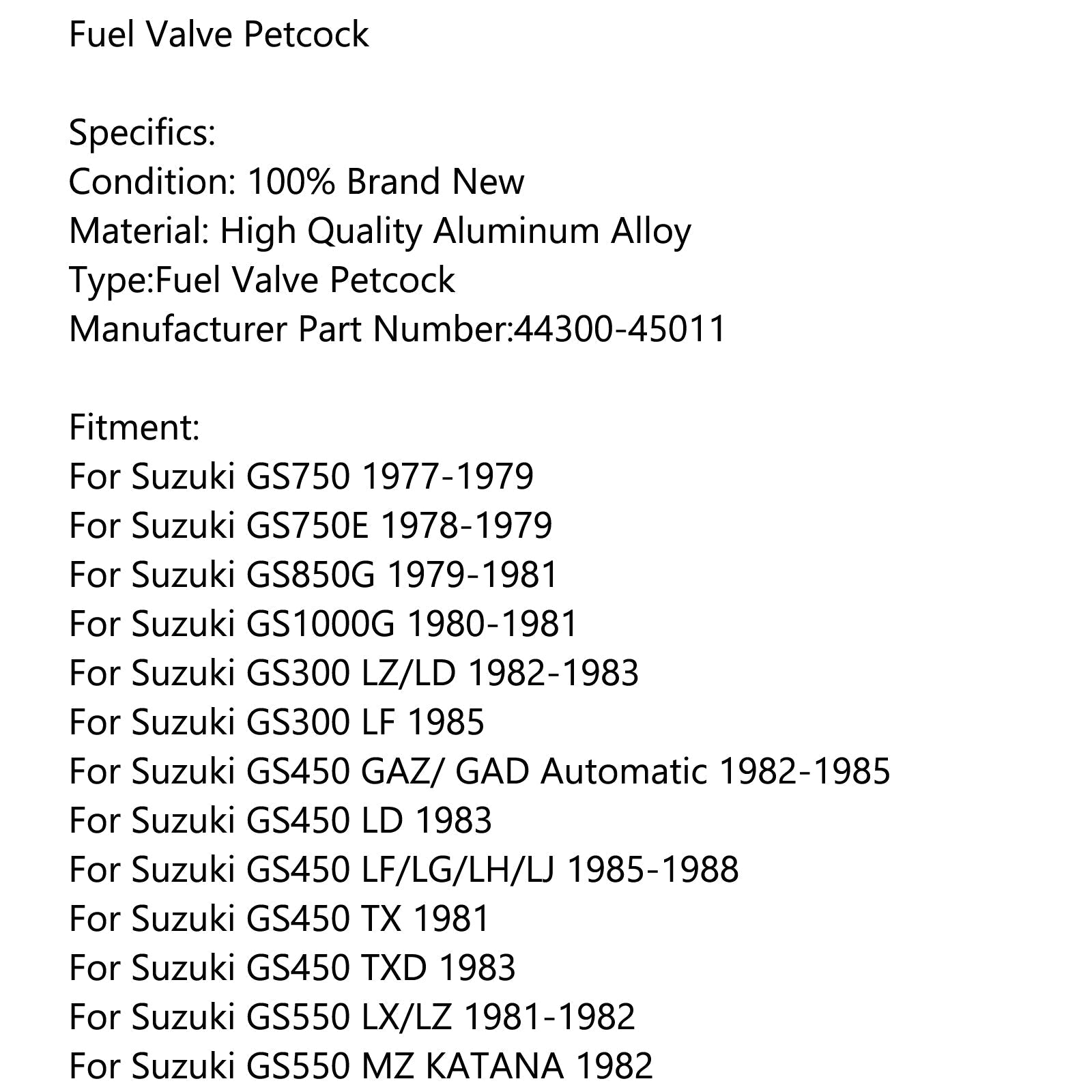 Gas Fuel Petrol Valve Petcock 44300-45011 For Suzuki GS300 GS450 GS550 GS650 Generic